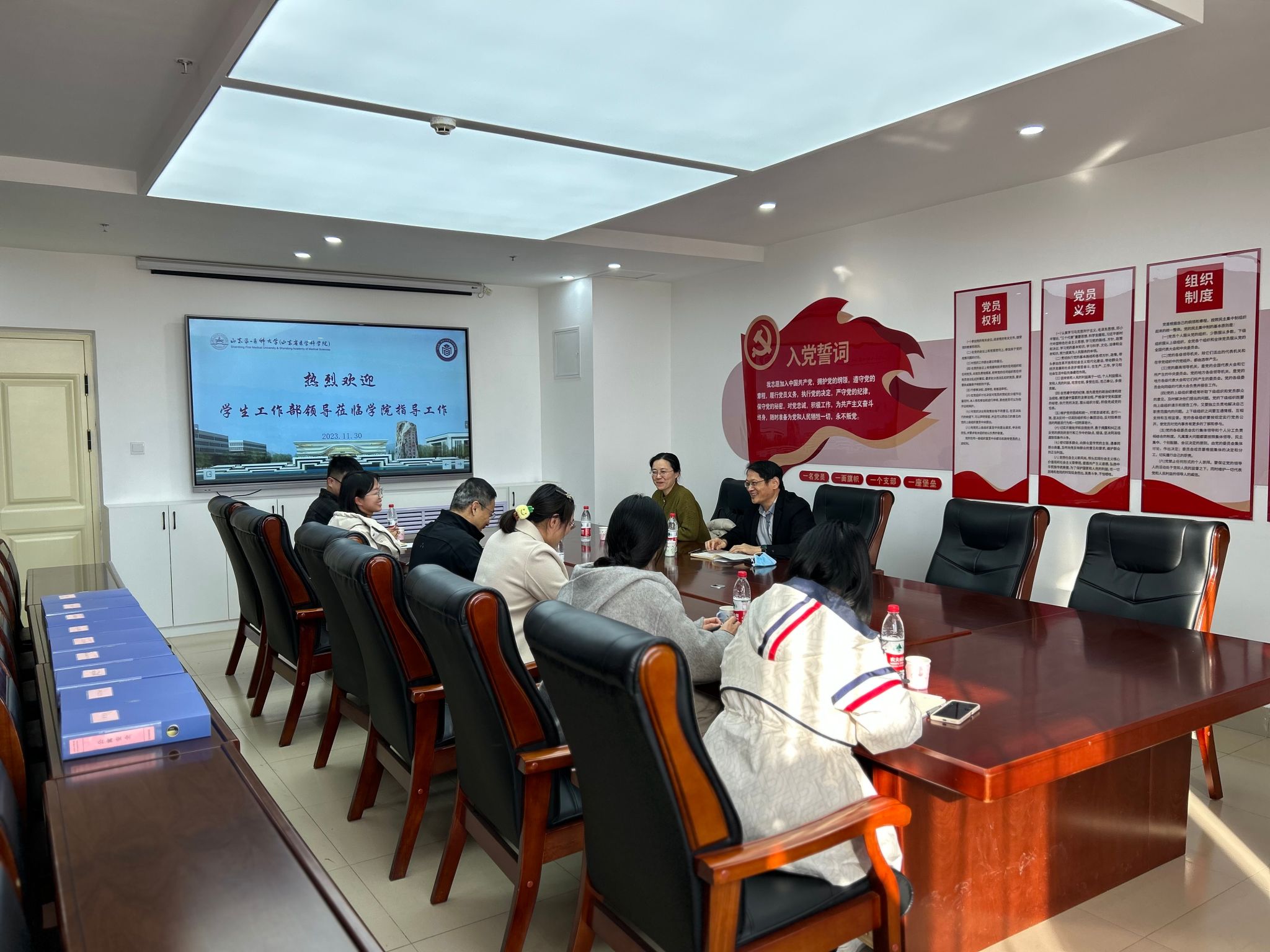 11月30日下午,买球赛十大平台(山东省医学科学院)学生工作部部长华波、副部长刘玉来十大买球官网指导学生工作,学院党委书记杜江山,学工办主任董灵芝,辅导员杨苗苗、安静、刘晓丹、张少儒老师参加会议。