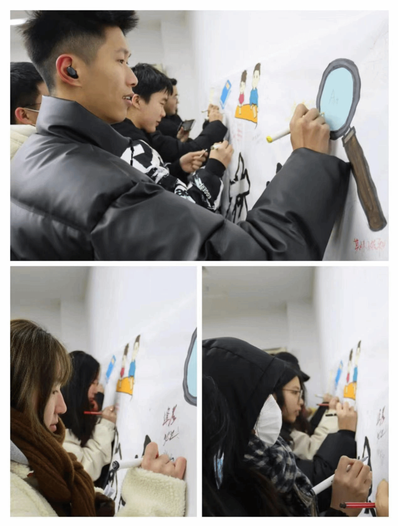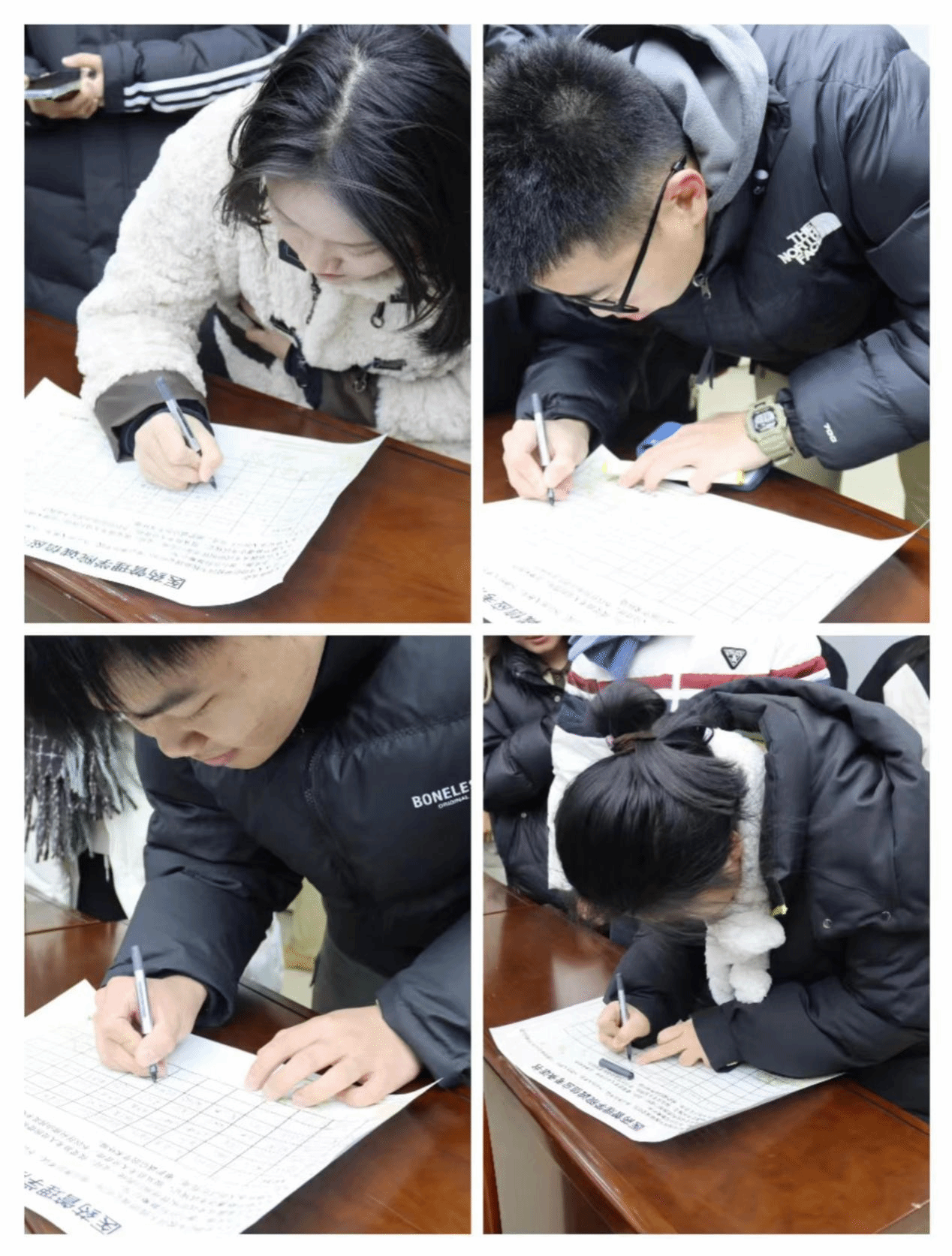 本次主题活动以便签祝福,板报涂鸦、立军令状的形式展开,同学们“以祝福换祝福”写下诚信应考的誓言,收获祝福送出祝福,并以诚信应考为主题“共绘一幅画”,在画板上留下自己对诚信考试的诺言,共同完成了一幅诚信应考的画卷。主题签名活动“诚信应考军令状”以班级为单位,各班同学将自己名字签在签名纸上,为诚信应考做出承诺。同学们在活动中也纷纷表示要共同营造“诚信考试光荣,违纪作弊可耻”的考试氛围,为学校的学风建设贡献自己的一份力量。