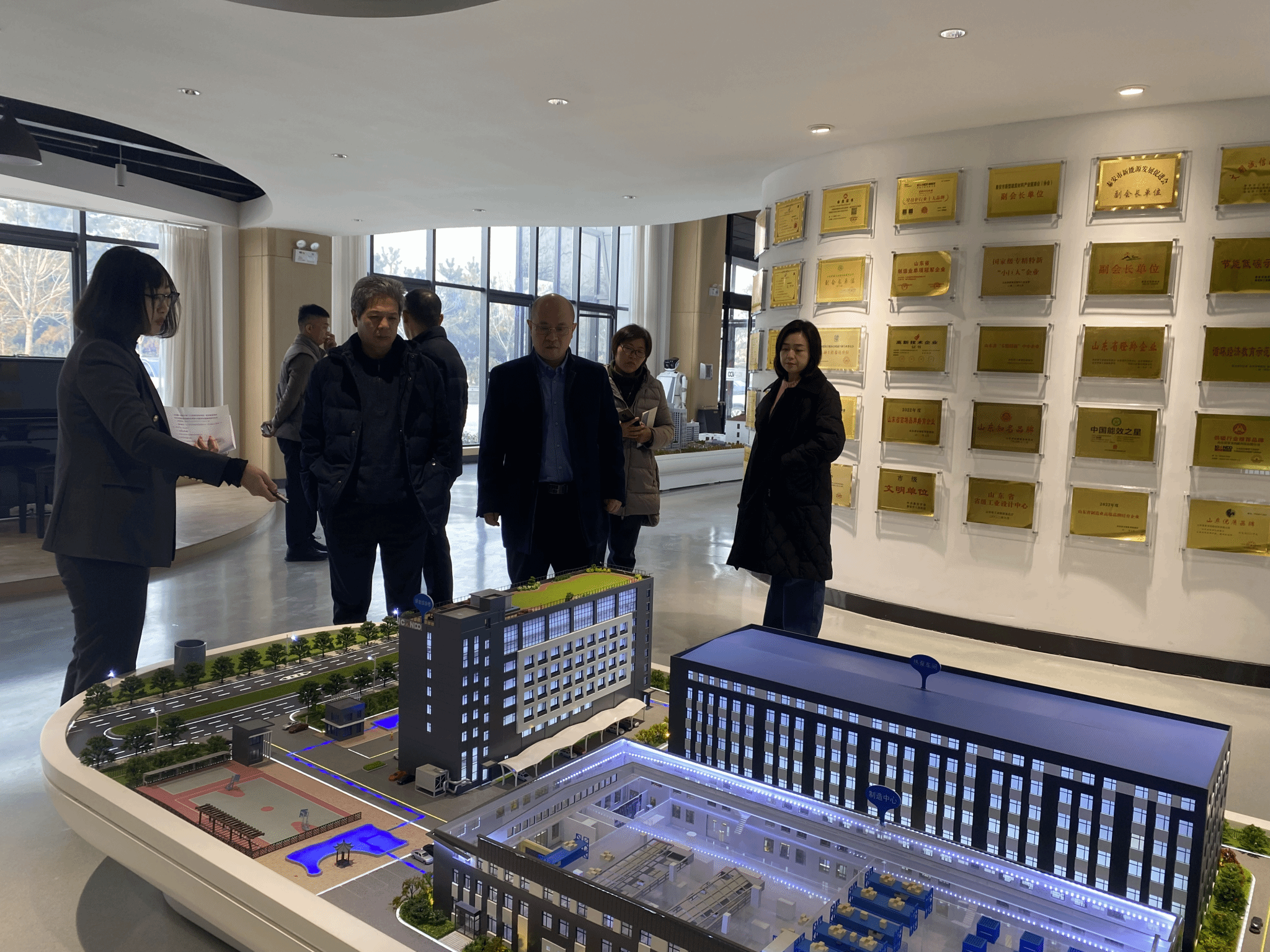 仪式开始前,陈士福一行参观了公司世界能源科技馆、产品设备系统、工程案例集、企业文化墙、商学院培训中心等地,进一步了解了企业的生产运营情况,对接企业用人需求。
