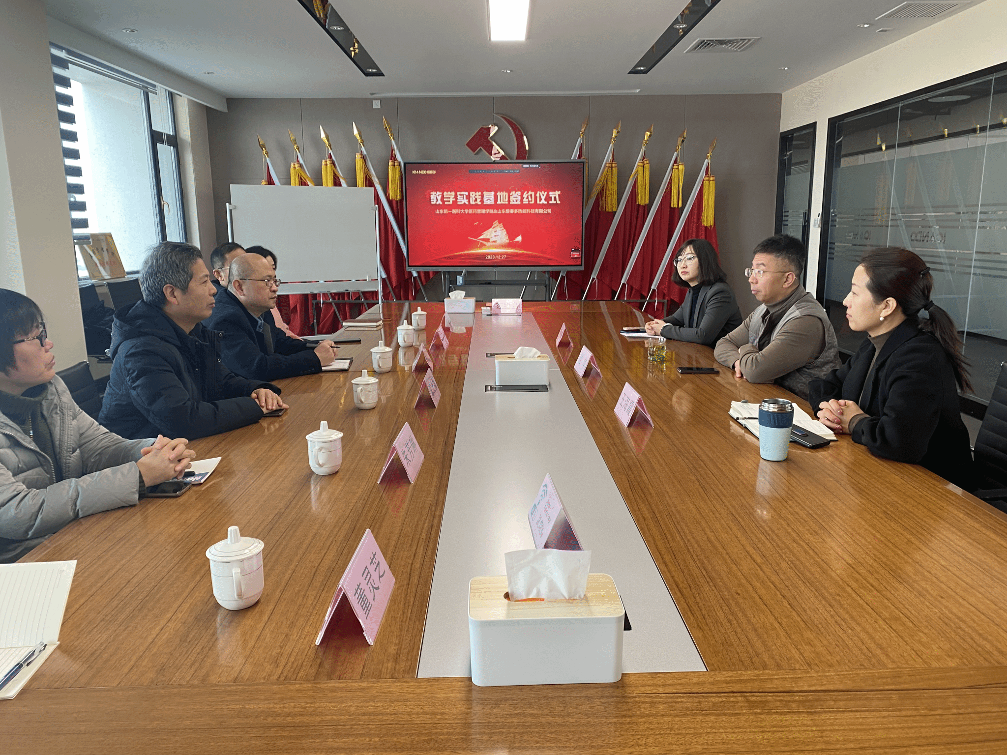 双方代表签订了实践教学基地协议,会议举行了实践教学基地揭牌仪式。