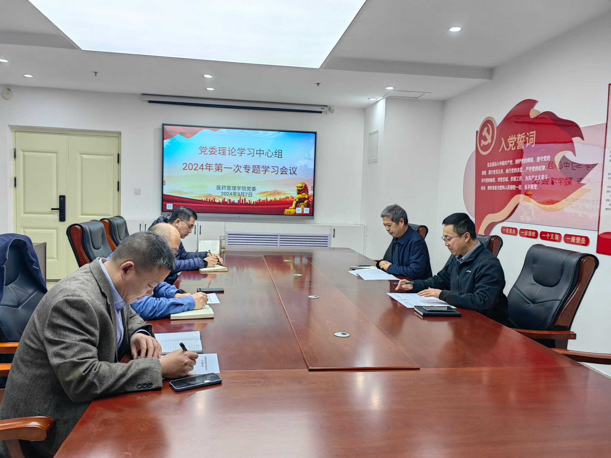 3月7日上午,十大买球官方网站召开党委理论中心组2024年第一次集体学习。会议由学院党委书记杜江山主持,党委理论学习中心组全体成员参加。