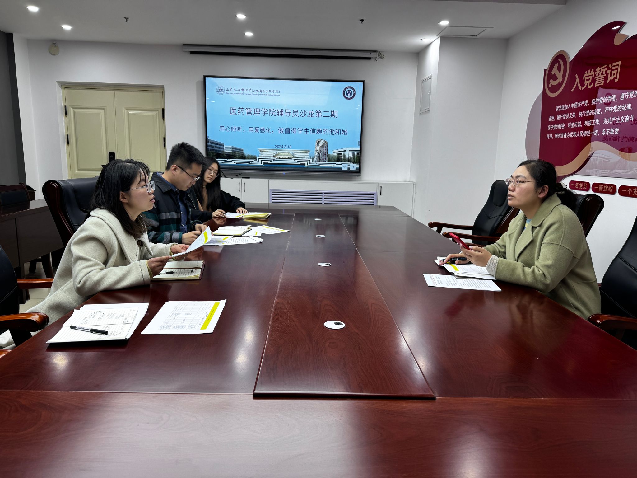 为推进辅导员职业化、专业化建设,提升辅导员素质能力和工作水平,3月18日上午,十大买球官方网站举办了第二期辅导员工作沙龙。学工办主任董灵芝和全体辅导员参加沙龙,张少儒老师担任主讲。