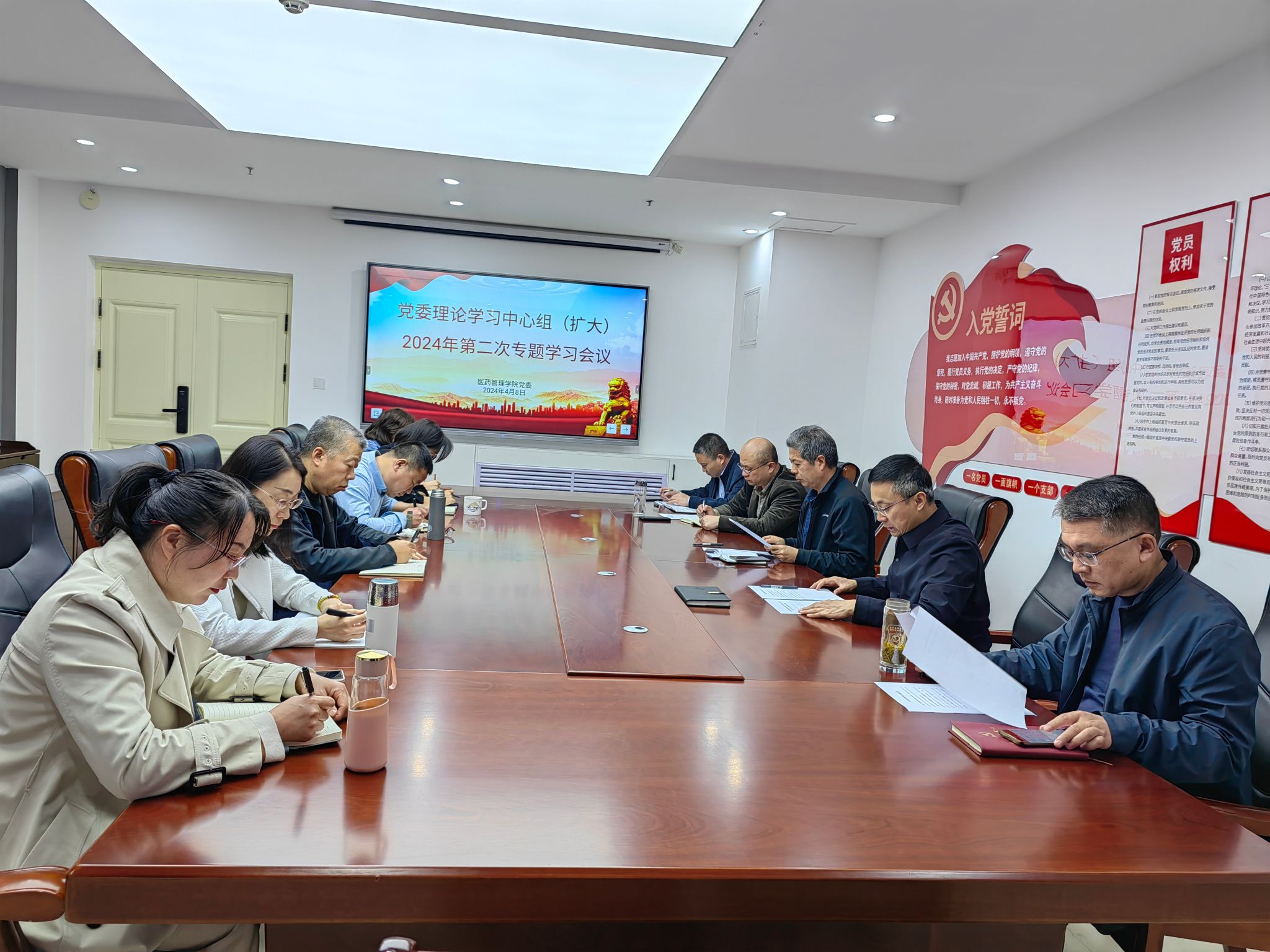 4月8日上午,十大买球官方网站召开党委理论中心组(扩大)2024年第二次集体学习。会议由学院党委书记杜江山主持,党委理论学习中心组全体成员、科级干部、支部书记及系主任参加。