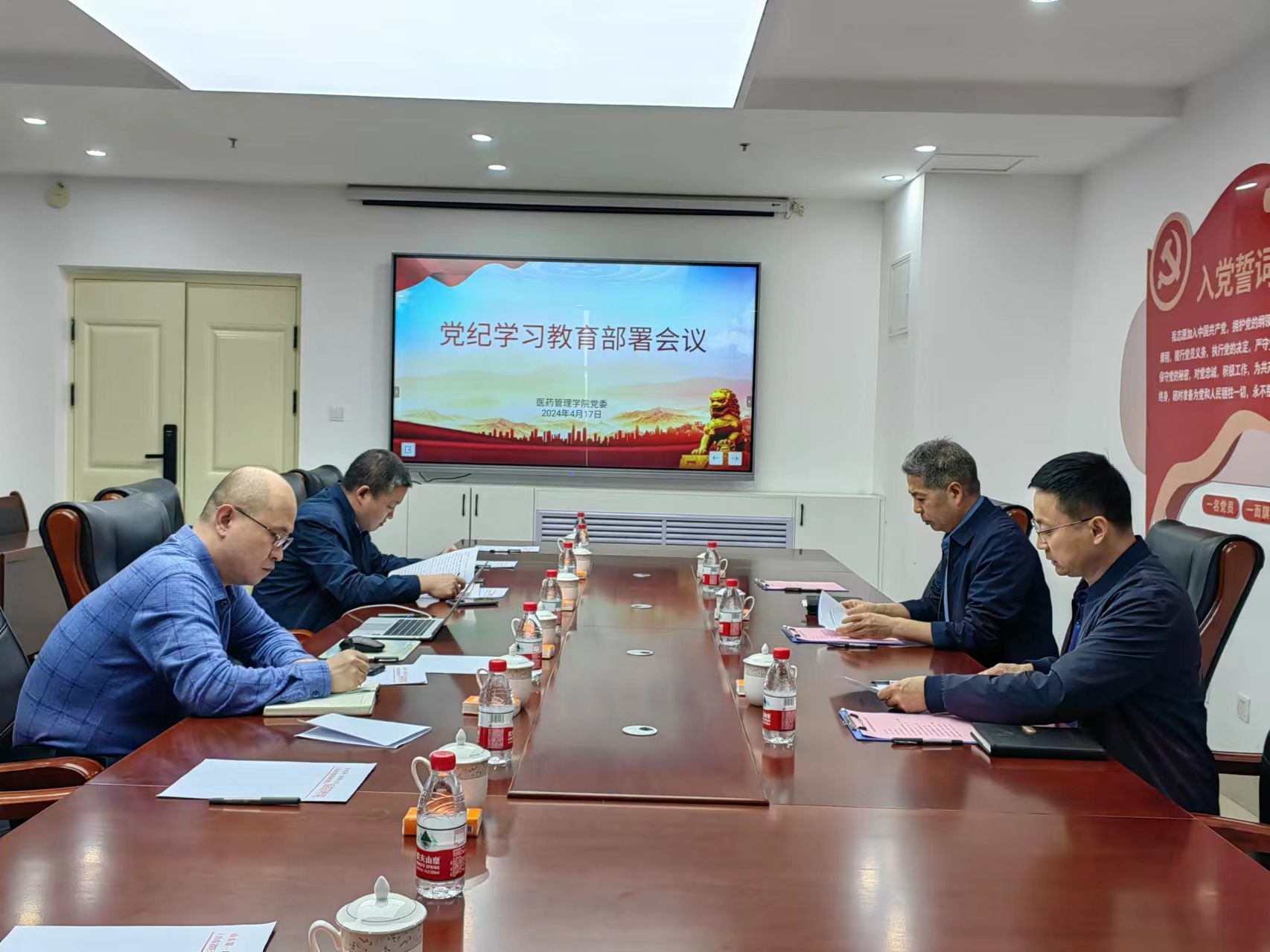 4月17日上午,十大买球官方网站召开党委会议,深入学习贯彻习近平总书记关于党纪学习教育的重要讲话和重要指示精神,认真贯彻落实中央决策部署和省委及学校有关工作要求,研究部署学院党纪学习教育工作。学院党委书记杜江山主持会议。