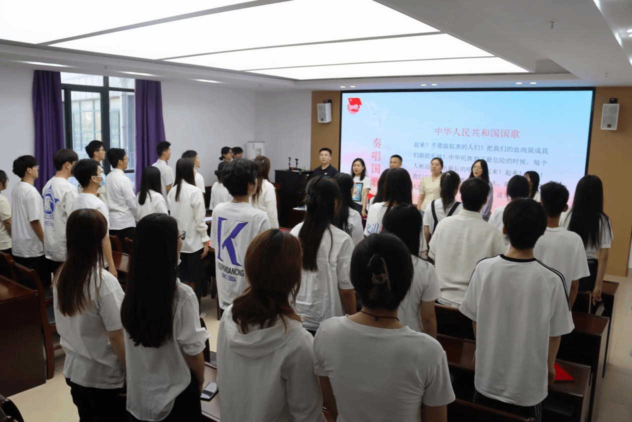 全体人员庄严肃立,高唱国歌。嘹亮的歌声、坚定的眼神和庄严肃穆的氛围都表达着十大买球官网青年对祖国深切的热爱。