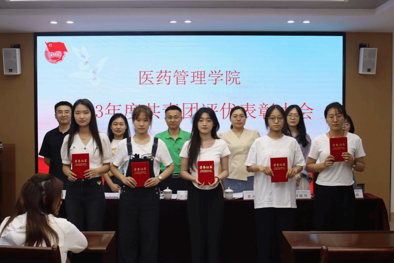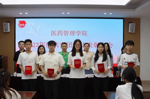 董灵芝介绍了共青团评优标准,安静宣读了学院共青团评优名单,刘晓丹宣读了新团员名单,张少儒老师以及团支书代表向新团员代表颁发团徽,学院老师依次对优秀团员,优秀团干部,五星红旗团支部进行表彰,并对新团员的加入表示欢迎,鼓励他们坚定信仰、砥砺前行,为学校的发展和社会的进步贡献自己的青春和力量。
