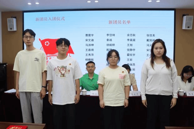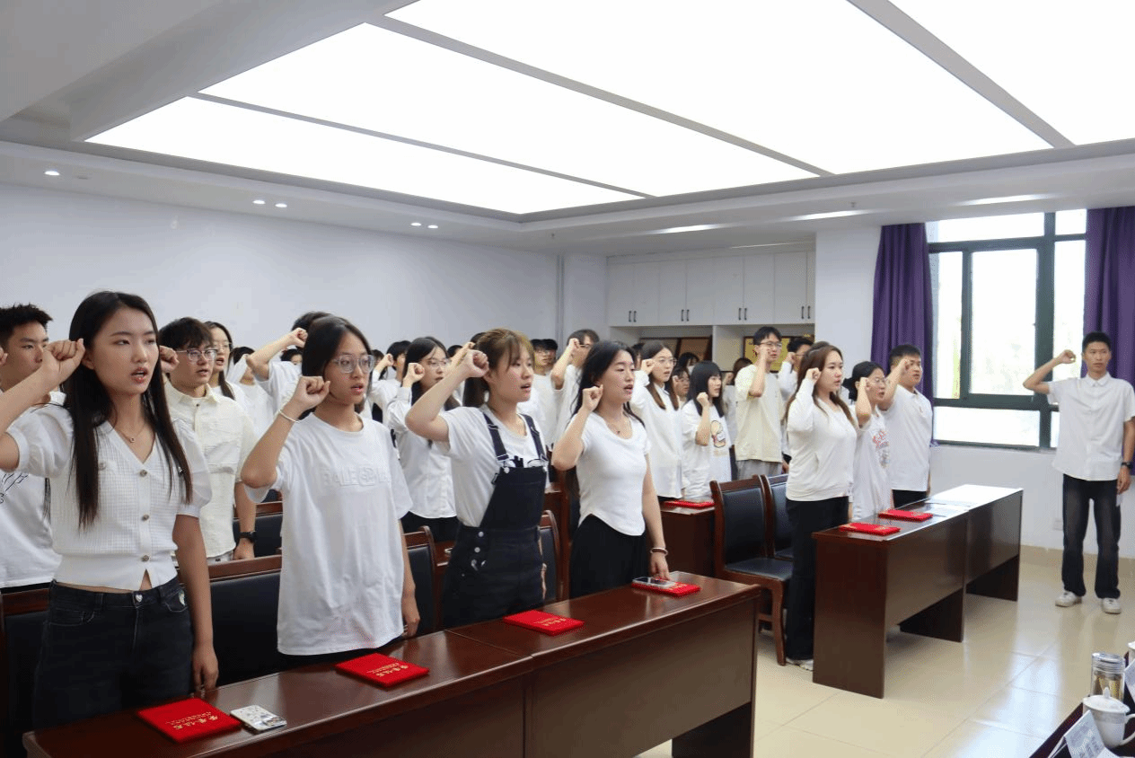 5月13日,十大买球官方网站在大会议室举行2023年度共青团评优表彰大会暨2024年上半年新发展团员入团仪式。学院党委书记杜江山、学工办主任董灵芝、全体辅导员老师、团员代表以及2024年上半年新发展团员参加仪式。