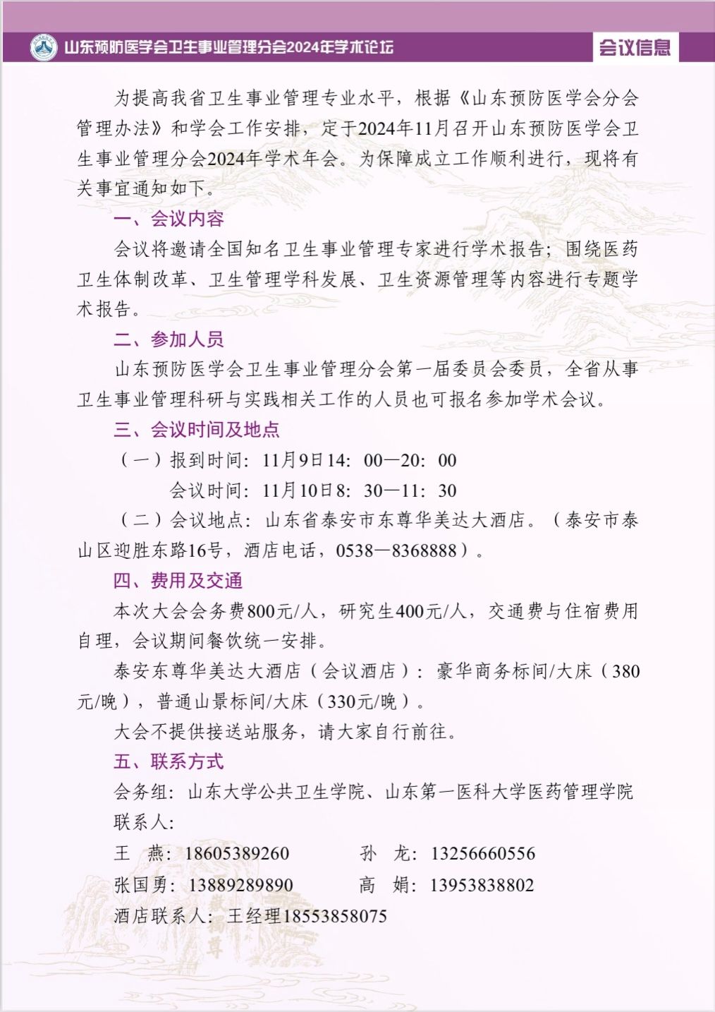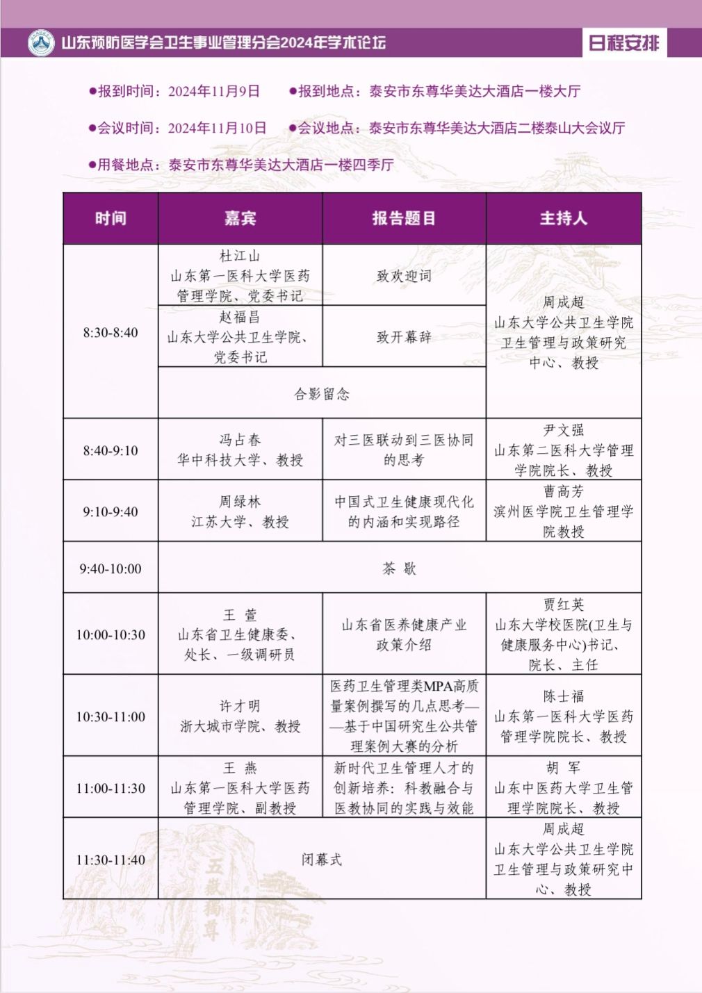 诚邀参会:十大买球官网承办山东预防医学会卫生事业管理分会2024年学术论坛