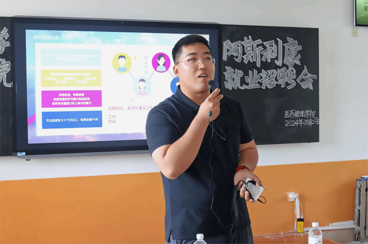 拓宽毕业生实习就业渠道,推动毕业生高质量就业,5月23日,十大买球官方网站邀请世界五百强药企阿斯利康在教学南楼C3007召开就业招聘会,阿斯利康校园招聘HR顾欣伟担任主讲,2024、2025届毕业生积极参与。