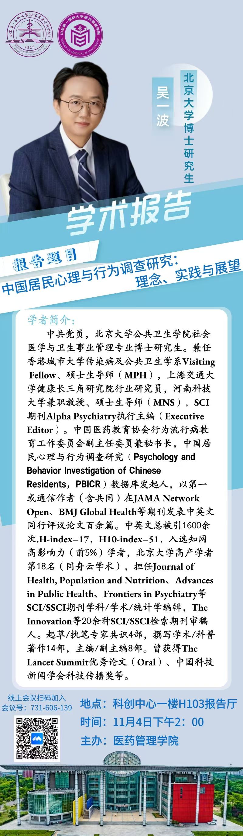 中国居民心理与行为调查研究:理念、实践与展望 ——吴一波博士学术讲座