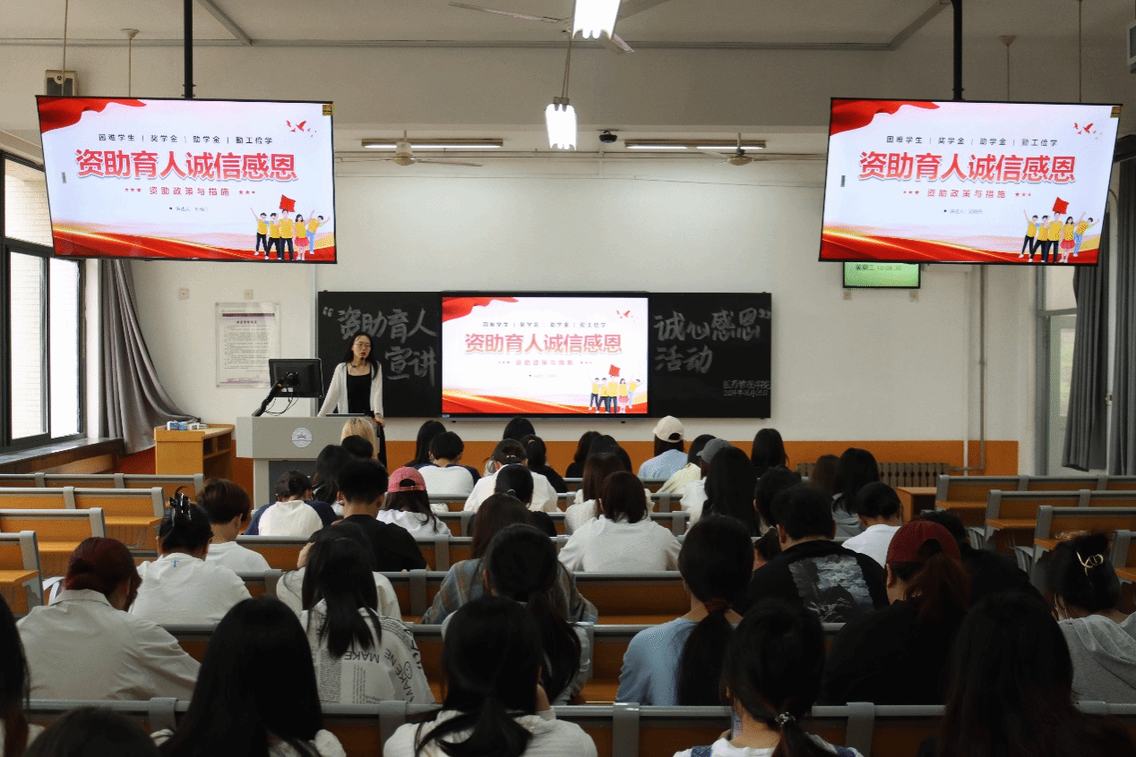 6月5日,十大买球官方网站在南C1007开展了“资助育人,诚信感恩”资助政策宣讲活动。辅导员刘晓丹老师主讲,学院受助学生参与。
