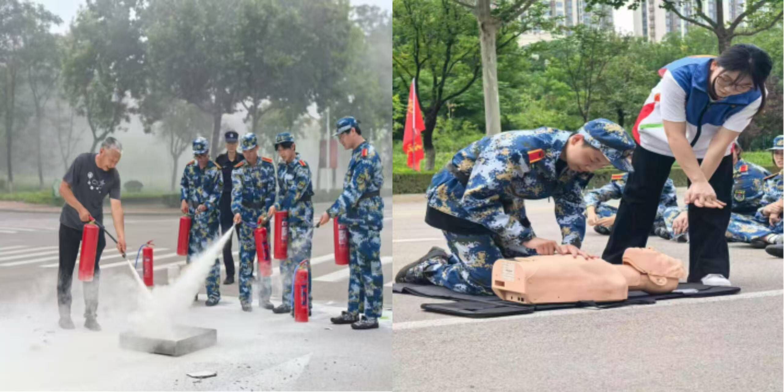 今年的军训课程更显匠心,科学的设置与丰富的内容。尤为特别的是 “战场医疗救护” 训练,新生们专注学习伤口包扎、骨折固定、心肺复苏等技能。指尖穿梭的绷带、按压胸腔的力度、判断呼吸的细致,每一个动作都承载着 “守护生命” 的重量。这不仅是一堂实用的军事课,更是一场生动的医学启蒙教育,让这群未来的医药管理者提前感知到专业背后的责任,为即将开启的专业学习奠定了坚实的思想基础。9 月 3 日,全体新生共同观看“纪念中国人民抗日战争暨世界反法西斯战争胜利 80 周年阅兵式”,当威武的方阵、先进的装备出现在屏幕上,现场掌声雷动。这场沉浸式的爱国主义教育,让同学们深刻感受到国家的强大,也更加坚定了“为医药事业奋斗、为人民健康护航”的理想信念。