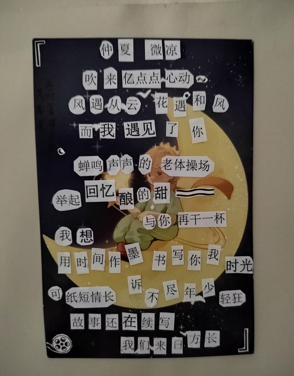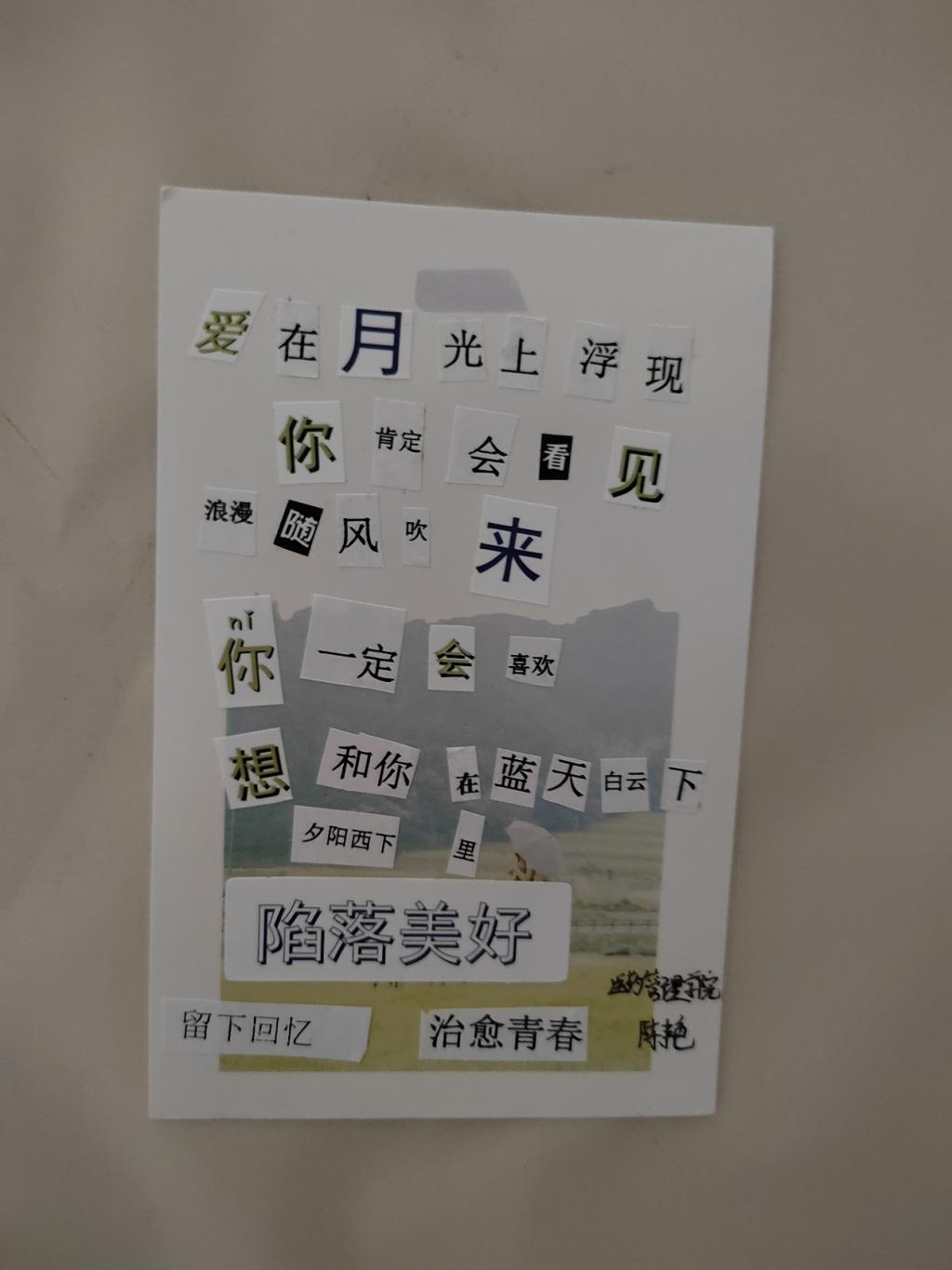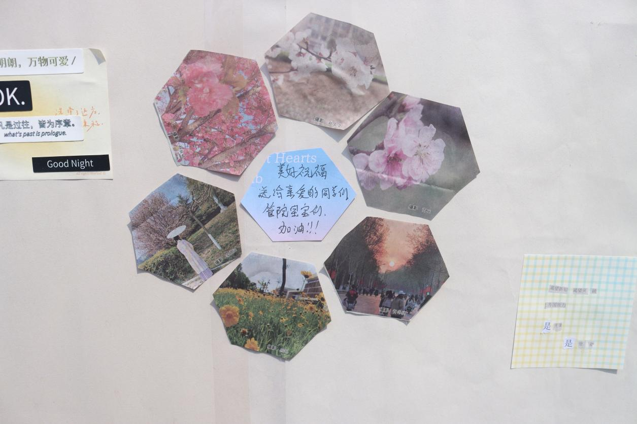十多天的活动进行过程中,不断吸引着志趣相投的同学们,他们尽情挥舞着手中的文字素材和剪刀,展现着自己独特的灵感与构思,用一个个跳动的文字拼凑出浪漫的诗词,创意十足……整个活动现场氛围活跃,创作者洋溢着热情的喜悦,吸引了众多同学驻足观看。