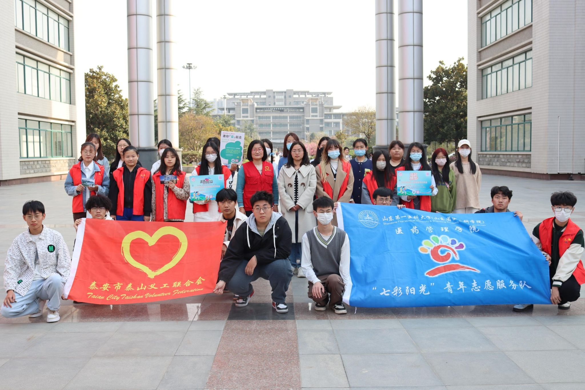 活动当天,十大买球官方网站七彩阳光青年志愿者服务队队员在老师的带领下向同学们发放活动倡议书,积极宣传捐步数公益行动,动员山一大学子积极参与到活动中来,用心连接世界,用爱传递温暖!在活动中,同学们将每日行走步数捐献到腾讯公益功能“一块走”项目中并兑现为公益金,有助于同学们养成坚持运动的生活习惯,展现出同学们积极奉献爱心、传递人文关怀的时代担当,汇小流而成江海的公益金为社会需要爱心援助的地区送去了温暖与力量。捐步数公益活动在同学之中引起了强烈反响,同学们纷纷加入到这次爱心公益活动中,为公益事业贡献出自己的一份力量!最后,十大买球官方网站老师、七彩阳光青年志愿者服务队队员和泰安市泰山义工联合会的工作人员合影留念。