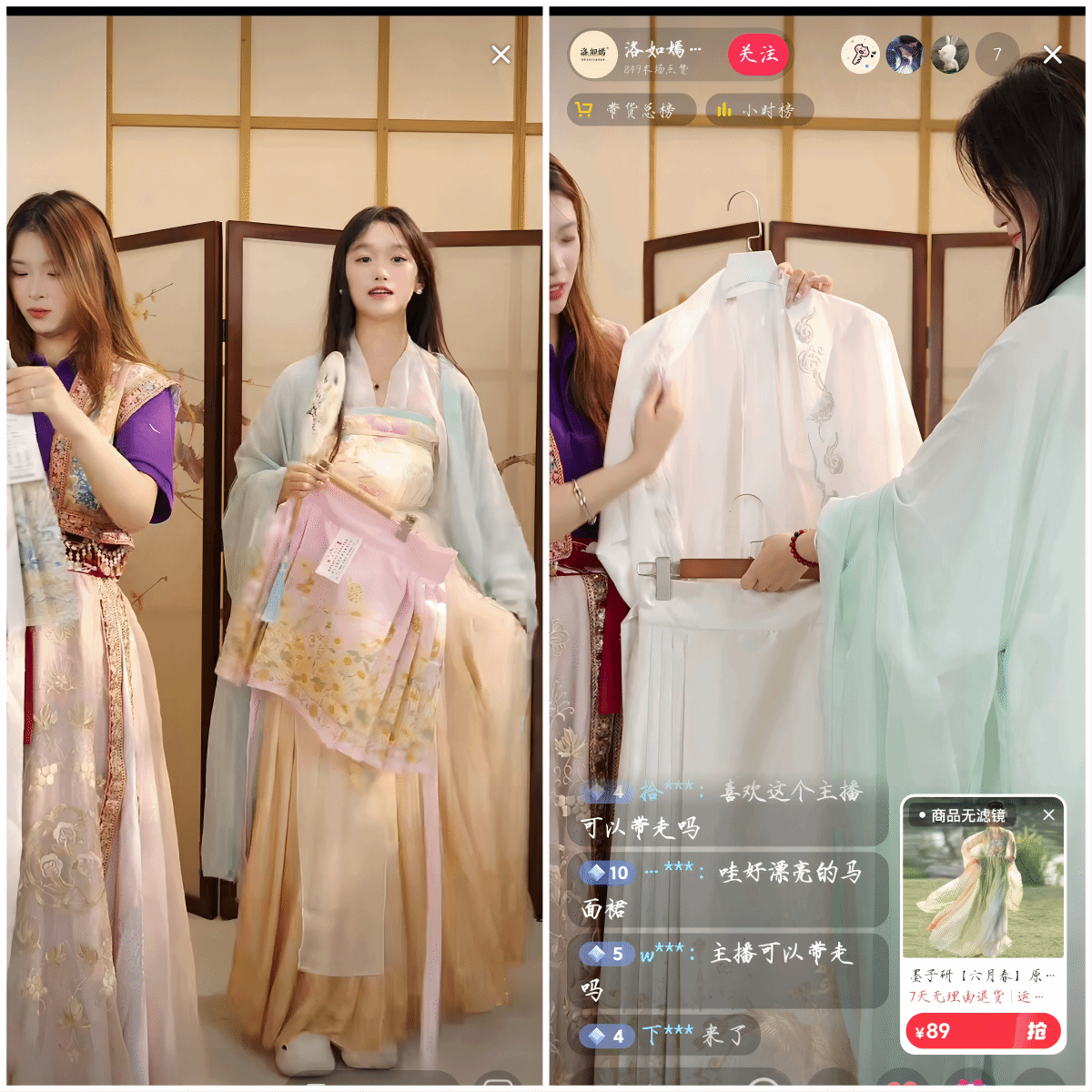 走进直播间,穿上各式各样的汉服,同学们在工作人员的指导下进行实际操作,顺利完成了汉服直播体验,让汉服在电商平台大放光彩,让更多人了解汉服,热爱汉服,进一步推动国风与传统文化复兴,促进当地人民发展汉服产业,助力乡村振兴。