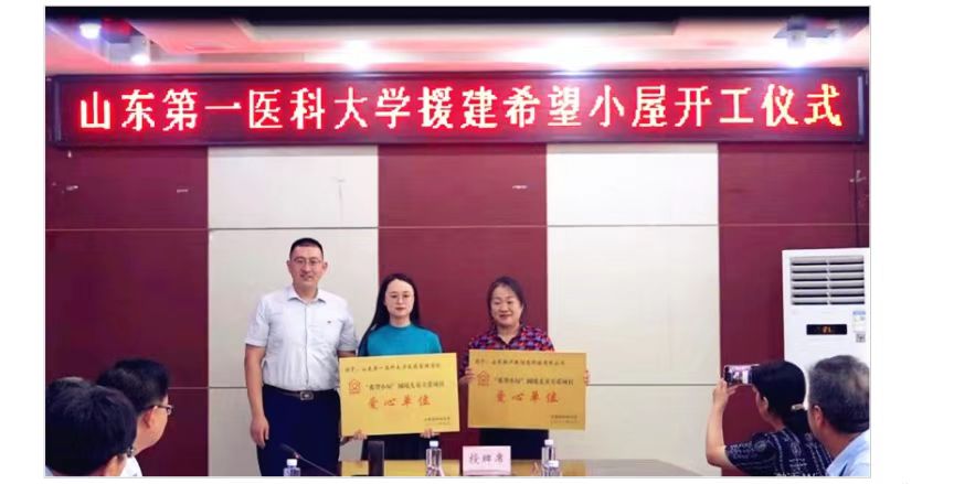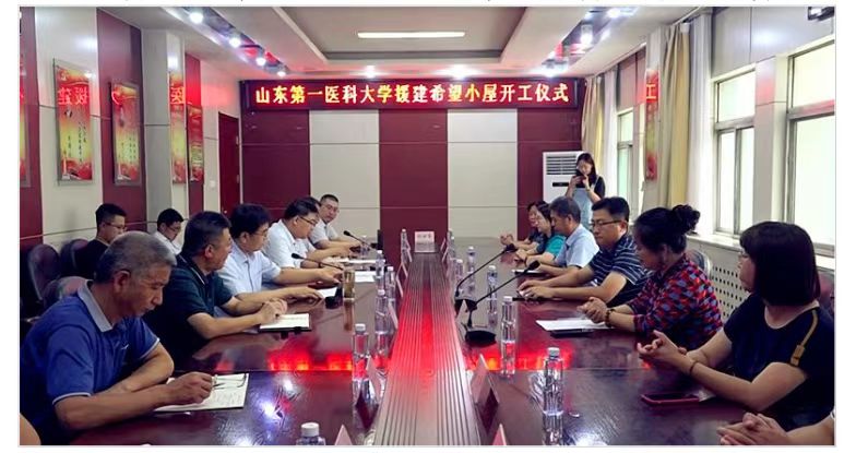 7月20日上午,买球赛十大平台(山东省医学科学院)联合山东新产教信息科技有限公司援建的希望小屋开工仪式在肥城市桃园镇举行。学校团委书记刘祥雨,肥城市委常委、政法委书记贾同国,联合援建企业总经理于美玲,十大买球官方网站院长陈士福、党委副书记胡睿,我校驻肥城市总队队长张勇,桃园镇相关领导以及我校人力资源管理专业部分师生参加了活动。