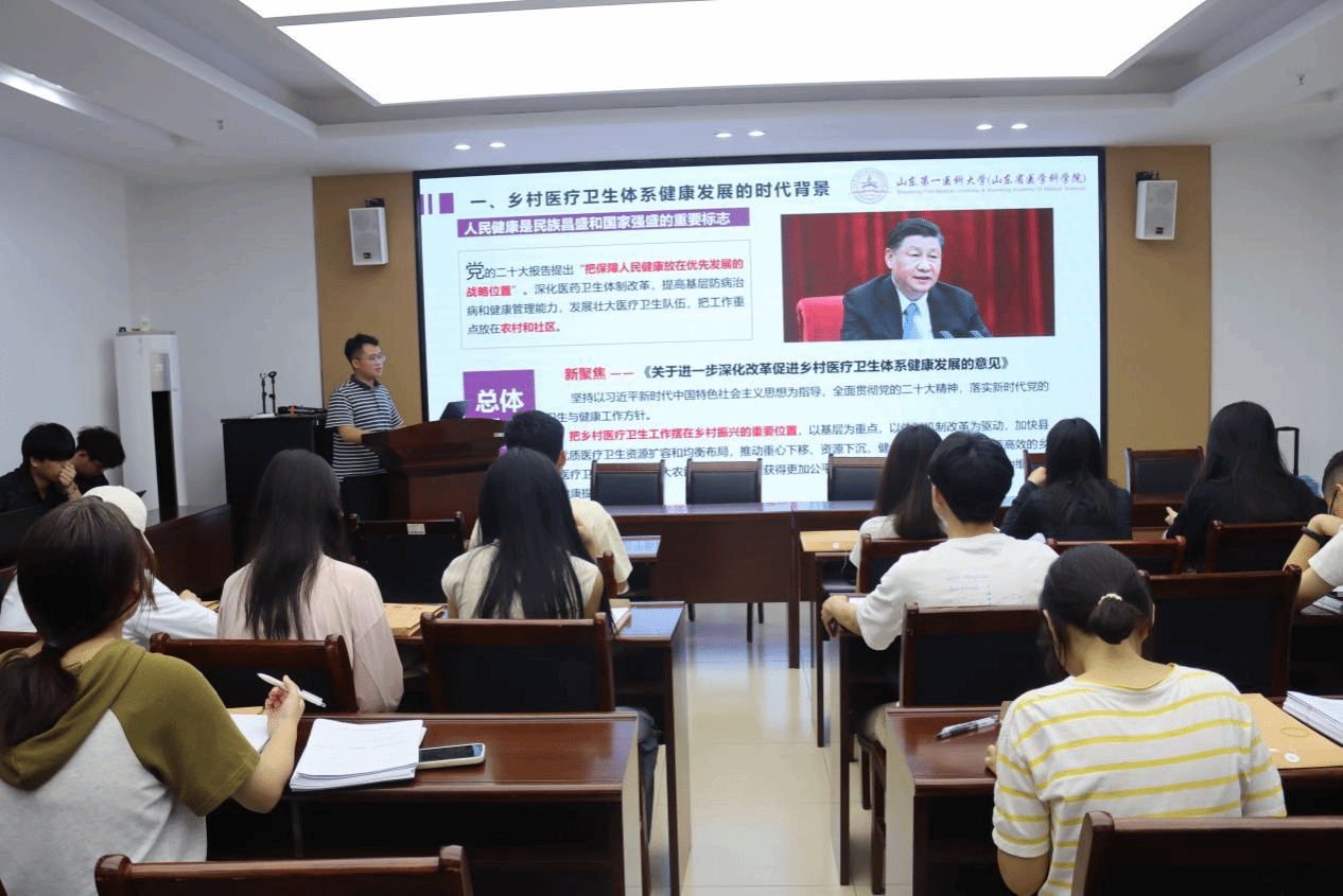 任纬兵在主持时要求同学们树立安全第一的意识,在进行社会实践调研的同时注意交通安全、财务安全、个人安全,确保调研活动安全有效进行,助力学院本年度暑期社会实践取得丰硕成果。最后,马晓龙在乡村医疗卫生体系健康发展即将迈入新阶段的背景下,以沂蒙革命老区为例,从沂蒙革命老区乡村医疗卫生体系的研究意义、研究思路、研究方法等多个方面带领大家深入探讨乡村医疗卫生体系健康发展的问题与对策,进一步深化了同学们对此次社会实践的认识。