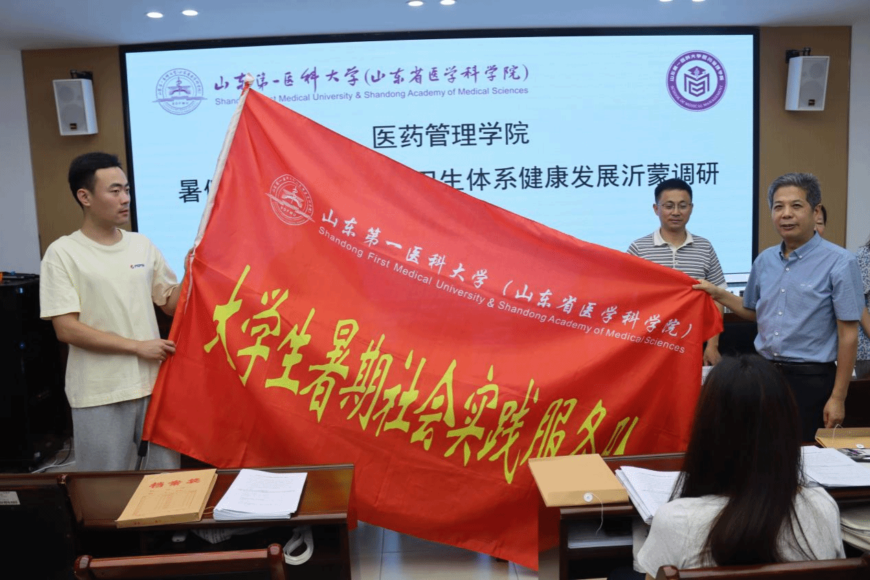 杜江山指出了本次社会实践的目标是对沂蒙革命老区的乡镇医院的医护人员和患者展开相关调查,了解乡村医疗卫生体系在当地医疗健康工作中的实践成效、发展现状及存在的问题,并通过对乡村医疗卫生体系现状调查研究,分析乡村医疗卫生体系运行高效的关键因素,为加强乡村医疗卫生体系改革提供思路和方法。他表示,此次实践活动对于同学们来说,既是历练,也是学习,希望同学们能够充分利用这次难得的机会,发挥专业特长,通过社会观察和亲身实践,深入开展社会服务和社会调查,以踏实严谨的态度积极投身到社会服务中去,为社会发展贡献青年力量。