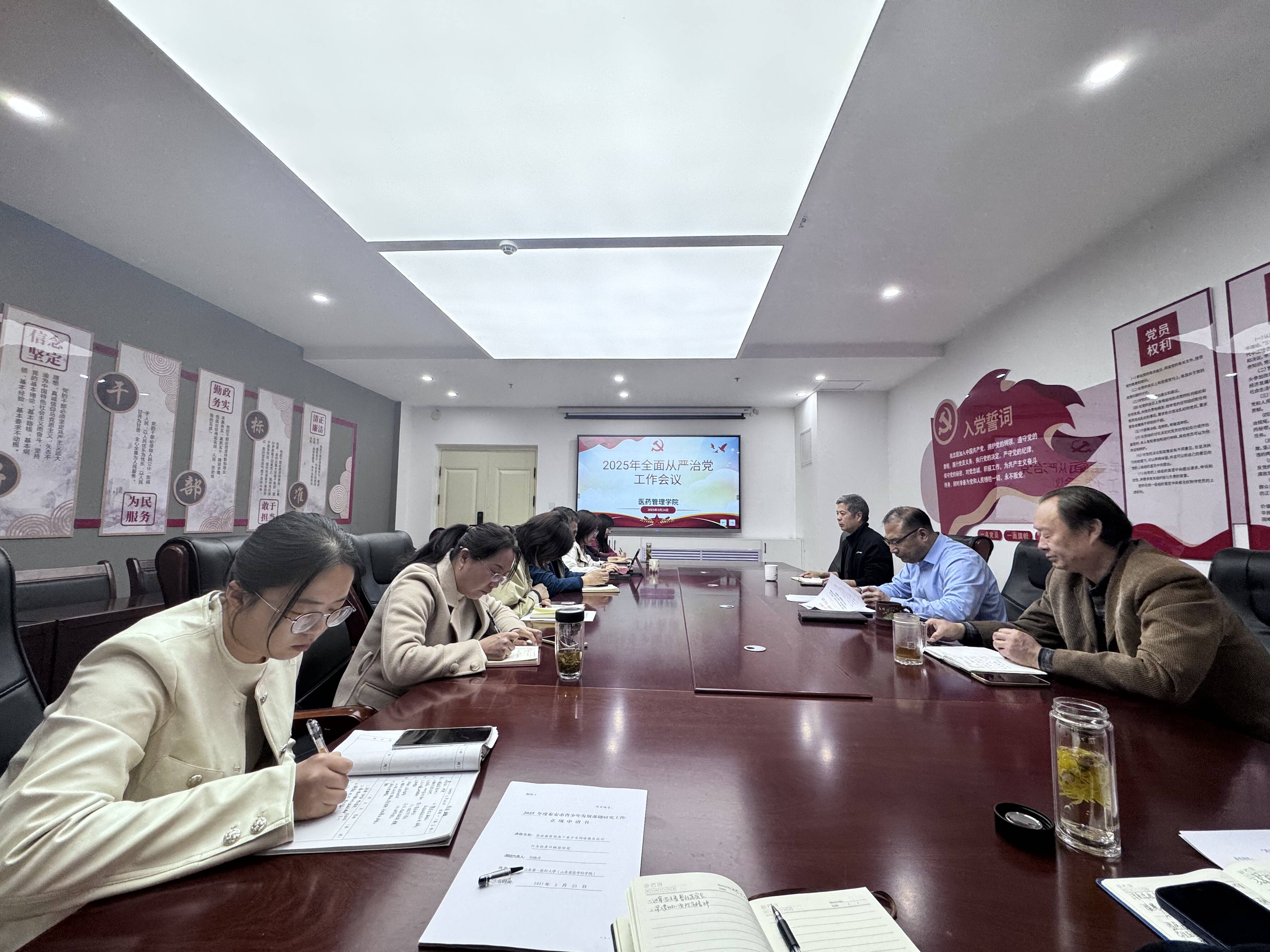 苏宝利传达了校(院)2025年全面从严治党工作会议精神,指出,2024年,学院党委坚持以习近平新时代中国特色社会主义思想为指引,坚决扛起管党治党、办学治院政治责任,始终坚持严的基调、严的措施、严的氛围,在深入学习贯彻习近平总书记重要讲话精神,认真落实省委、校(院)各项工作要求,纵深推进全面从严治党,全面加强党对教育事业的全面领导等方面持续发力,推动学院全面从严治党工作取得了新成效。
