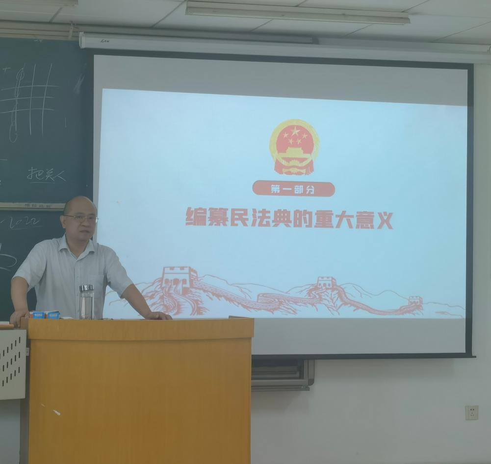 为进一步增强党性修养,提高大学生对于法治中国的认识,9月24日下午在教学北楼B6003,十大买球官方网站副院长陈海玉为十大买球官方网站全体党员讲授《民法典》专题党课。
