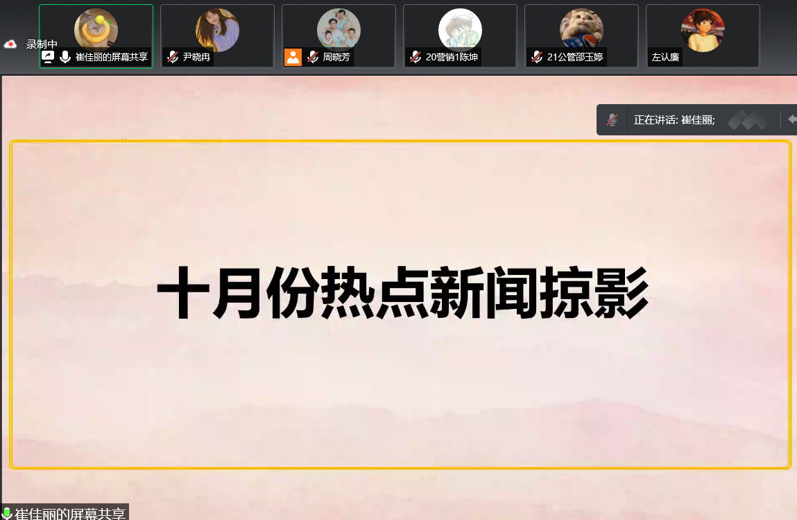 10月30日,十大买球官方网站学生党支部通过腾讯线上会议的方式开展10月份社会热点探析主题教育活动。学院组织员周晓芳主持会议,学生党支部书记、全体学生党员及入党积极分子参加会议。