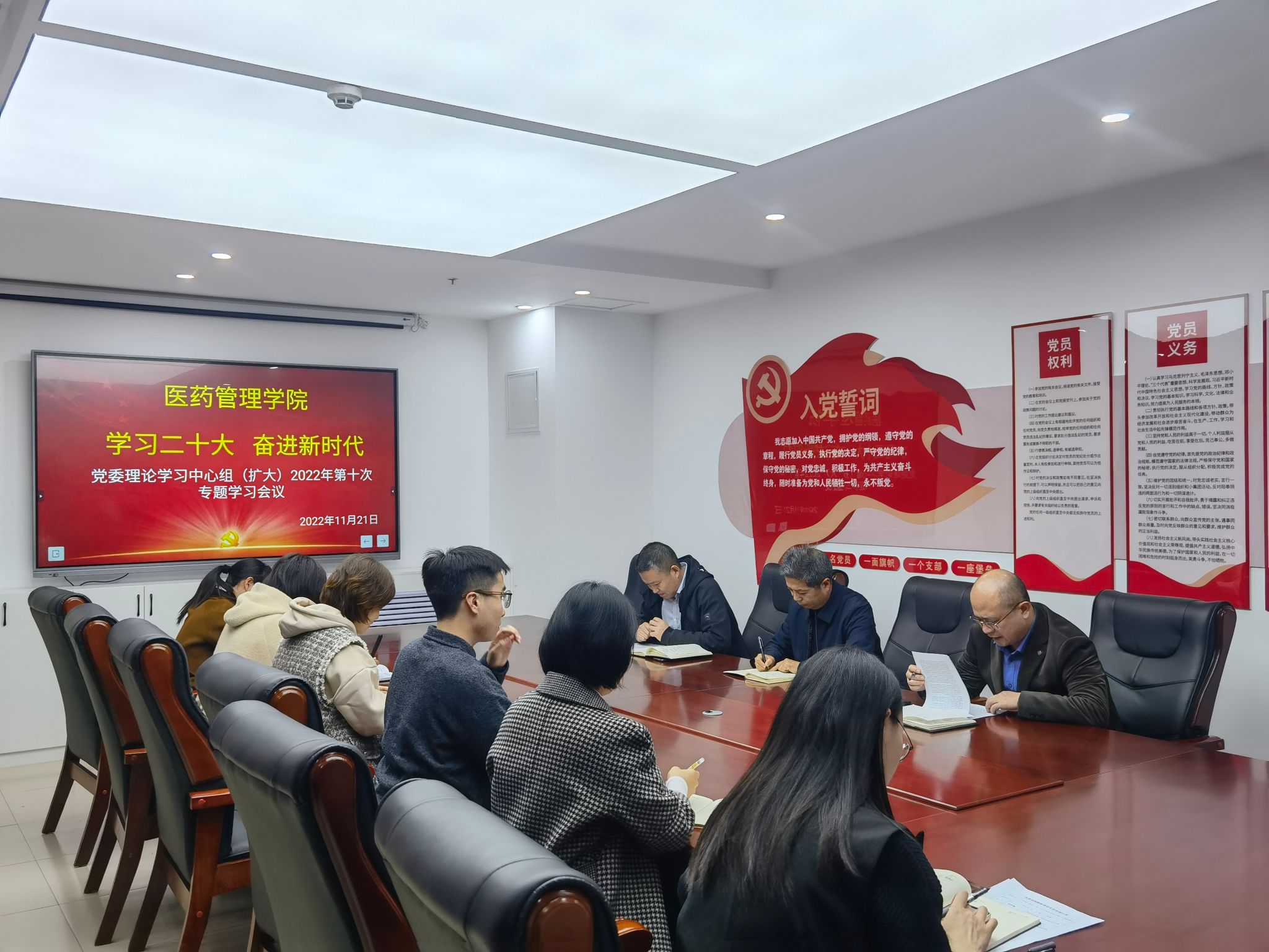 副院长陈海玉带领大家共同学习了党的二十大报告,党委副书记任纬兵传达学习了校(院)党委《关于深入学习宣传贯彻党的二十大精神的通知》要求。与会人员联系自己思想和工作实际,开展交流讨论,畅谈认识体会。