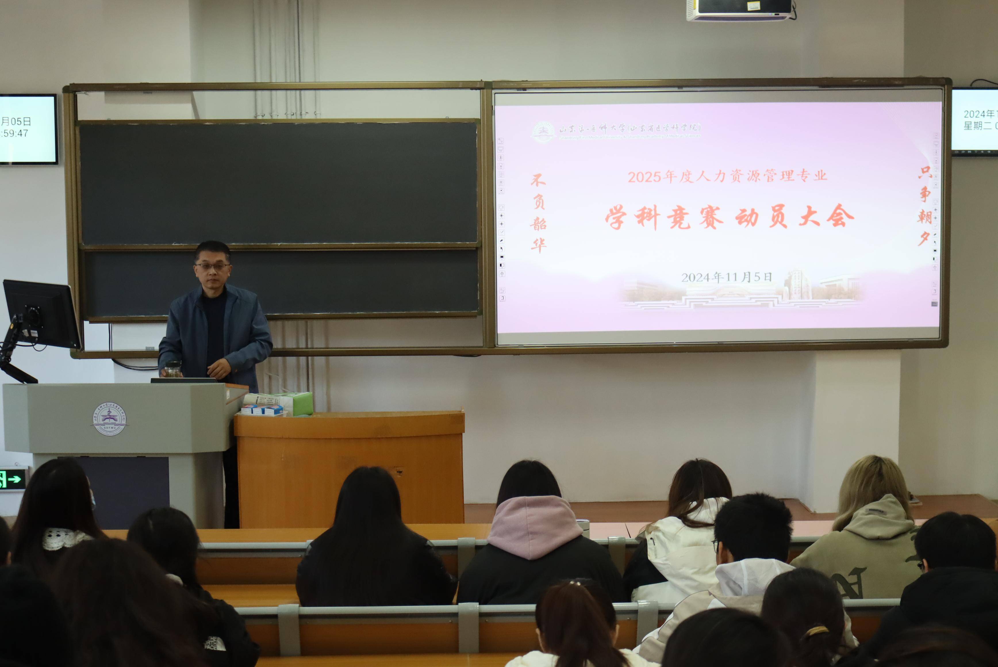 为帮助同学们了解学科竞赛的相关内容,动员同学们积极参与学科竞赛,11月5日上午,十大买球官方网站在教学南楼C2010教室召开了人力资源管理学科竞赛动员大会。本次动员大会由人力资源管理系主任于忠军主讲,辅导员刘晓丹及23级人力资源管理专业学生参会。