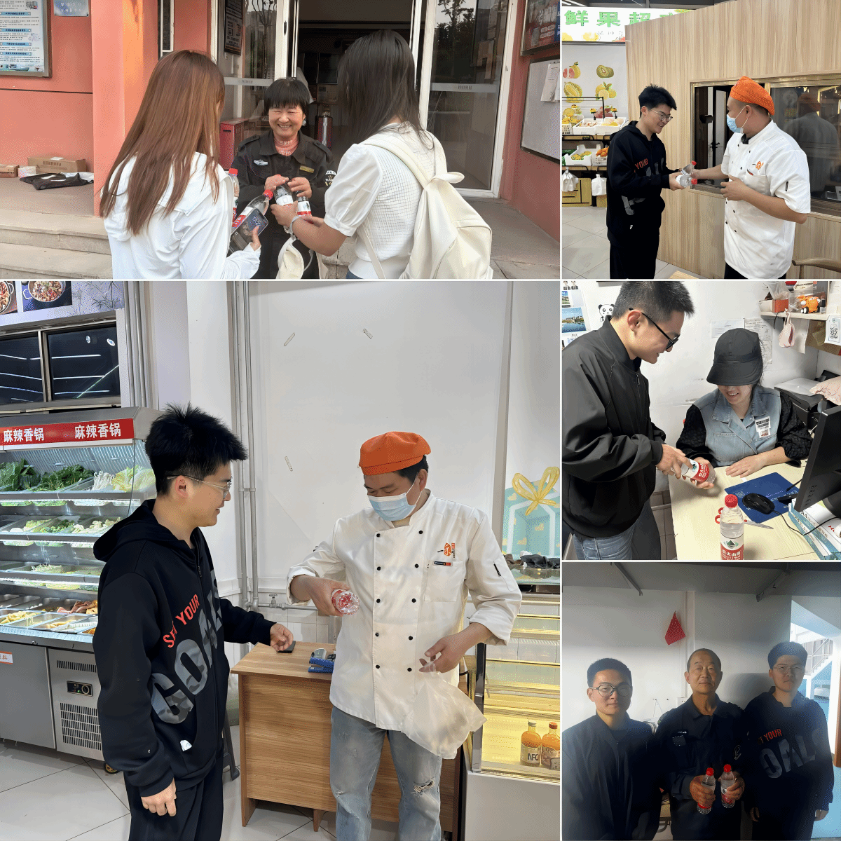 此外,十大买球官方网站的同学们带着敬意与祝福,向一直为我校师生默默奉献的校园保安、宿管阿姨以及食堂工作人员送去节日的问候和祝愿,感谢他们为和谐校园建设的辛勤付出。他们脸上洋溢的幸福微笑也深深感染着我们。