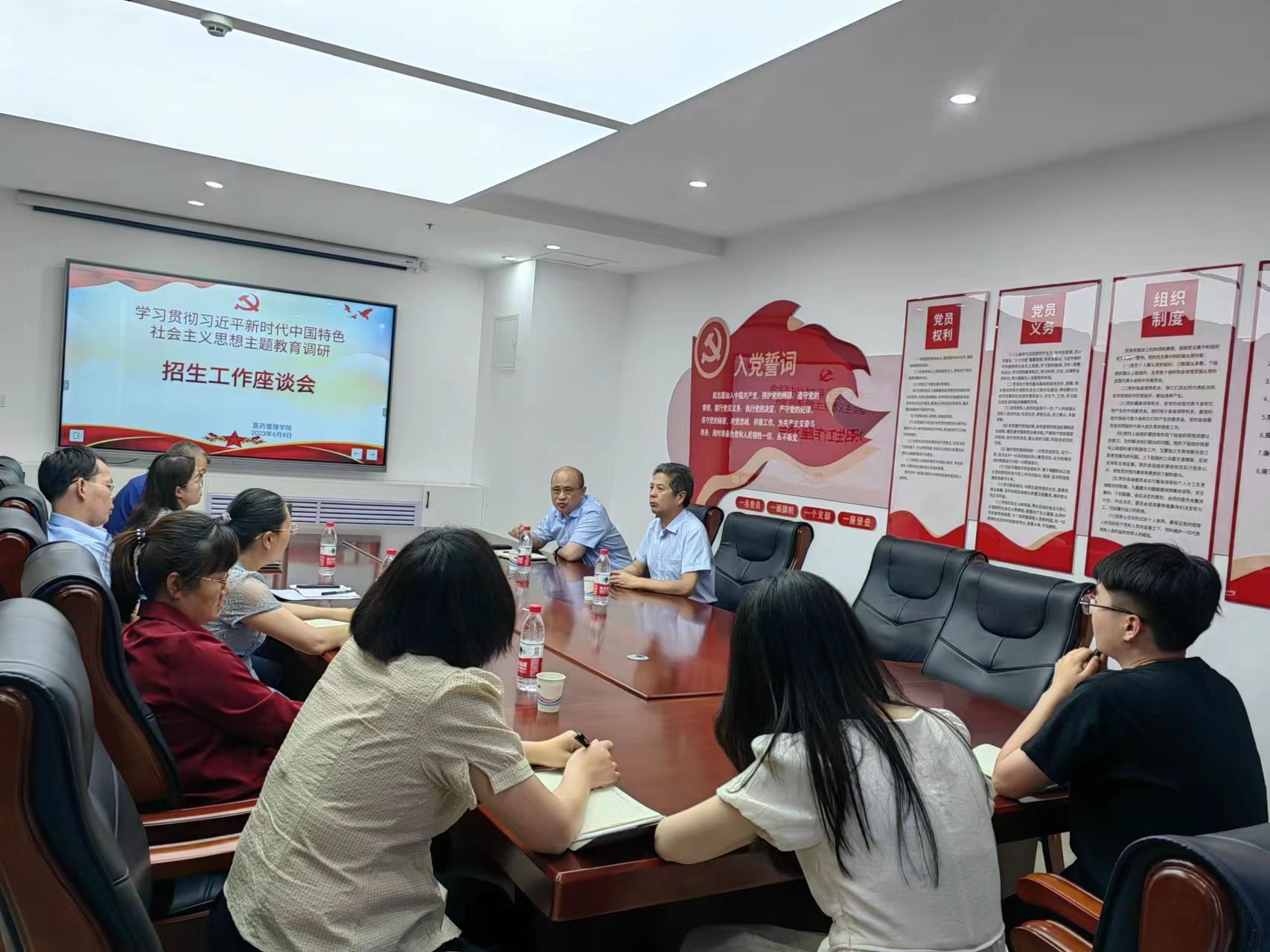 为全面贯彻落实党的二十大精神和党中央关于在全党大兴调查研究的决策部署,扎实开展学习贯彻习近平新时代中国特色社会主义思想主题教育,推动学院招生工作高质量发展,按照学校关于主题教育的工作安排,6月9日下午,十大买球官方网站召开主题教育专项调研招生工作座谈会,学院院长陈士福、副院长陈海玉,各系主任及全体辅导员参会。