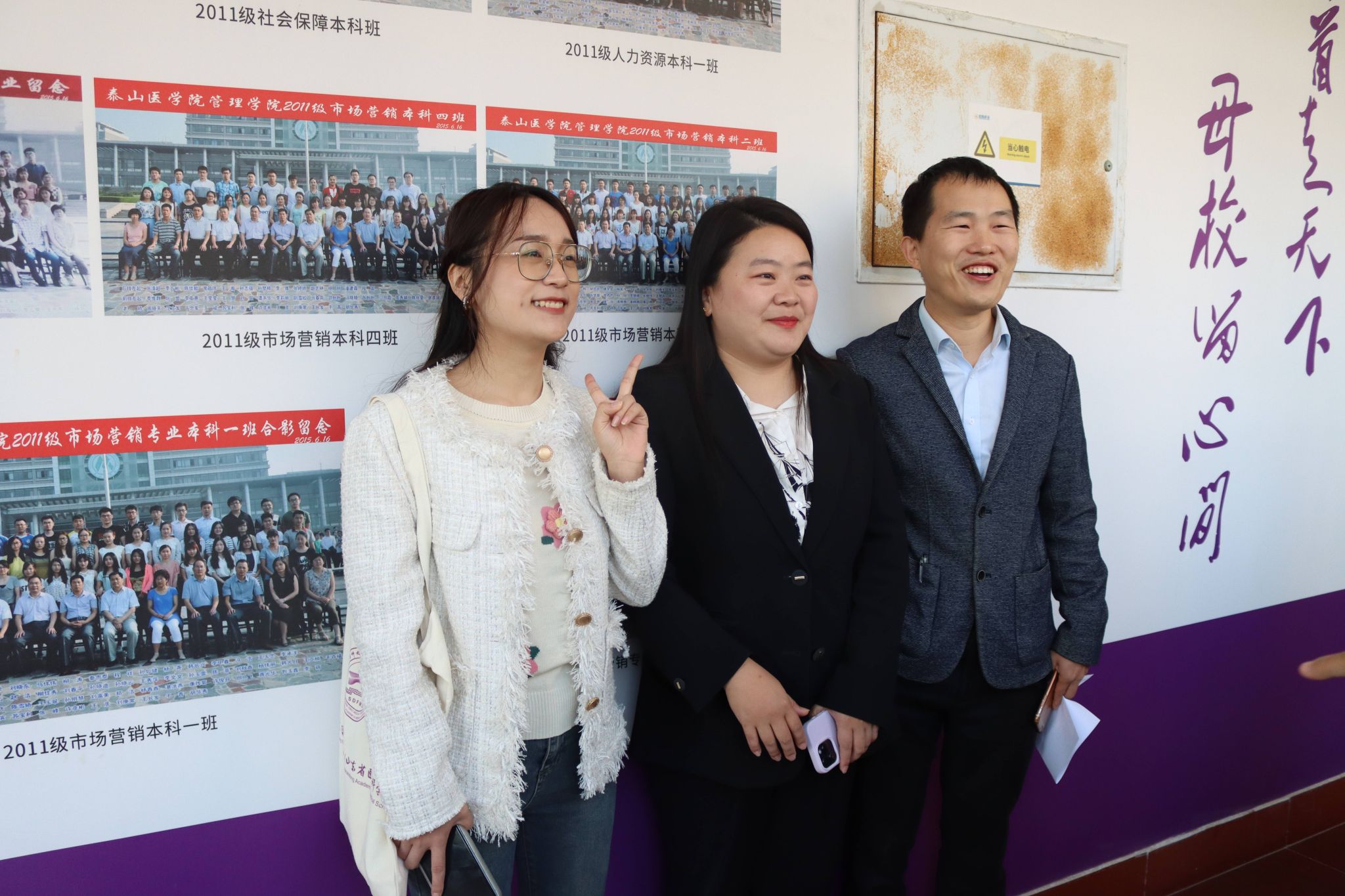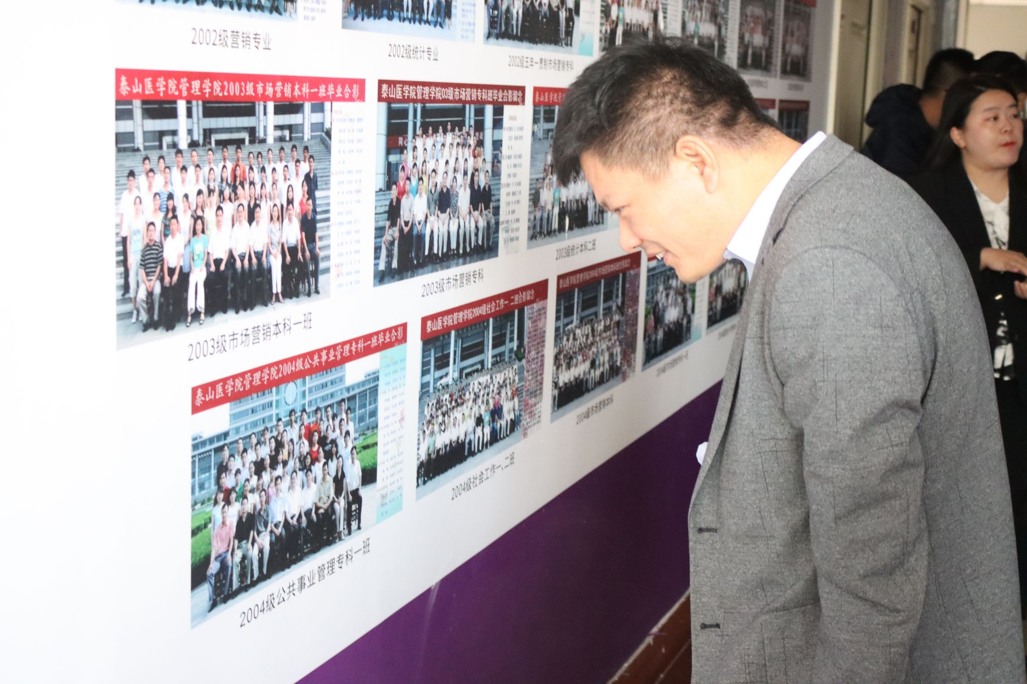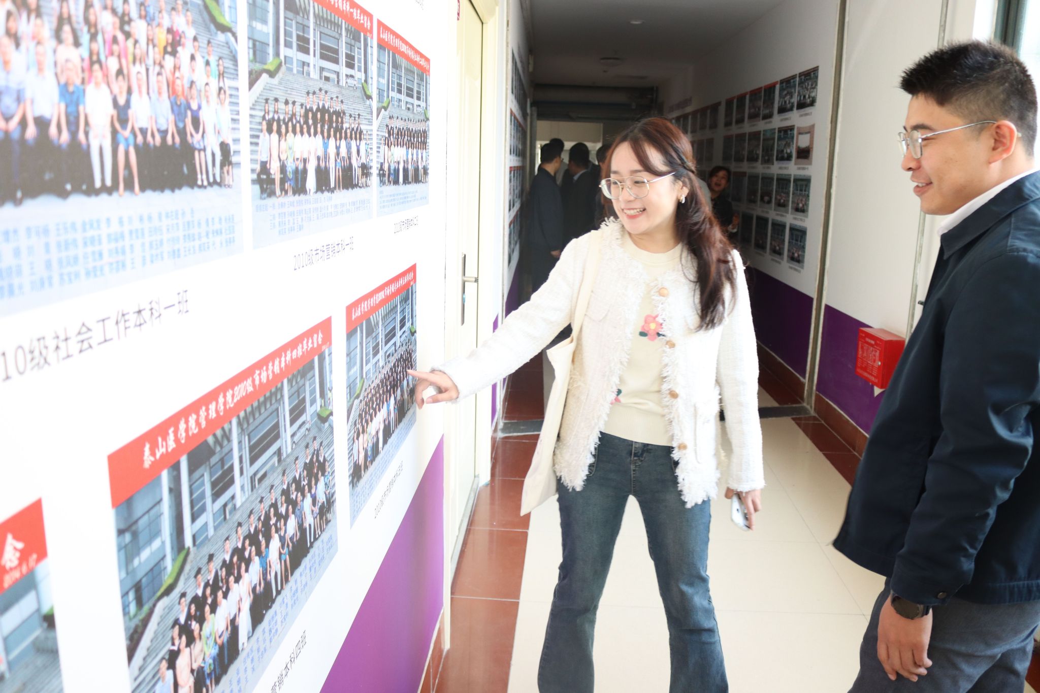 开幕式结束后,学院老师及校友参观学院文化墙并合影留念。